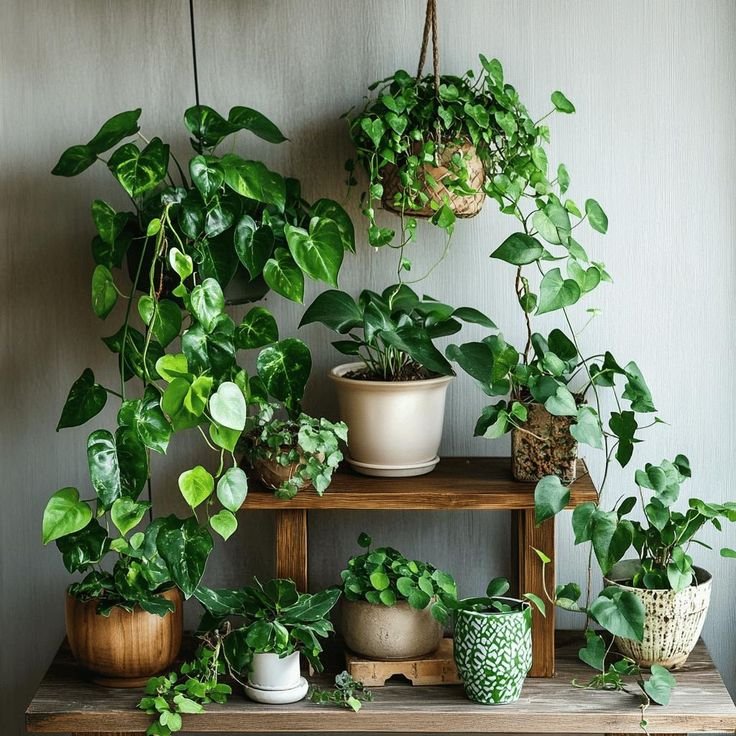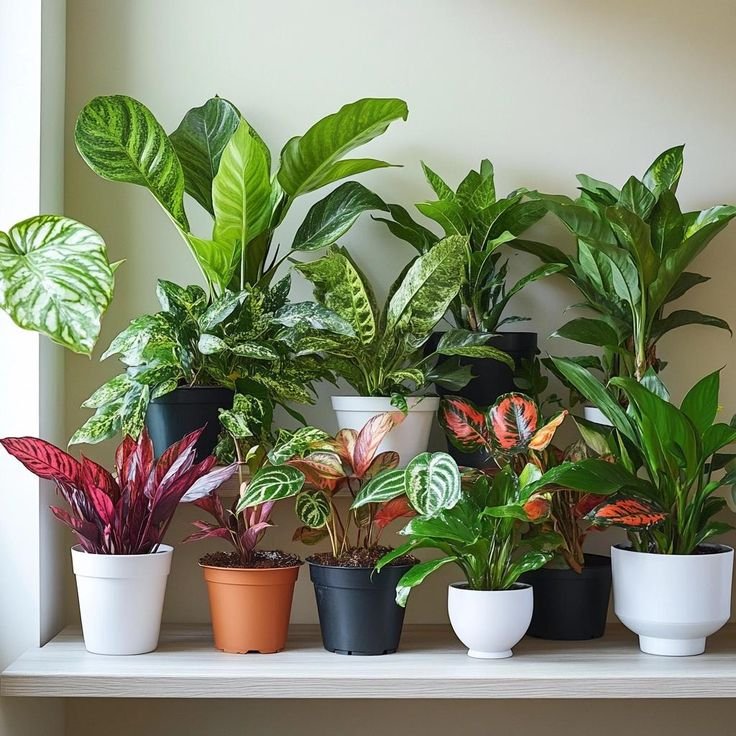 Indoor plants are grown inside homes or offices for decoration, air purification, and stress relief, requiring minimal sunlight and care.